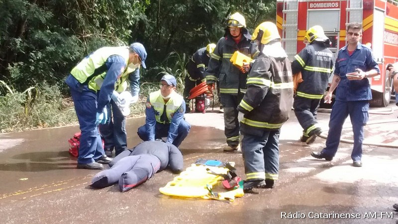 Bombeiros participam de simulação na SC-453