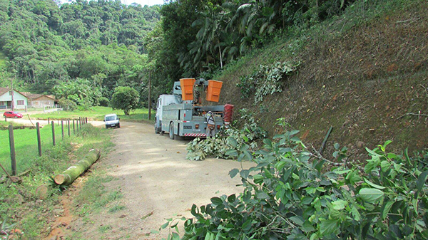 Em Santa Catarina, dependendo da região, até 60% dos desligamentos de energia elétrica nas redes da Celesc são causados por vegetação próxima as linhas de distribuição. As interrupções são mais frequentes durante tempestades, quando a força dos ventos arremessa árvores, galhos e cascas sobre os condutores e causa curto-circuito, interrompendo o fornecimento. A foto mostra estragos após temporais em Rio do