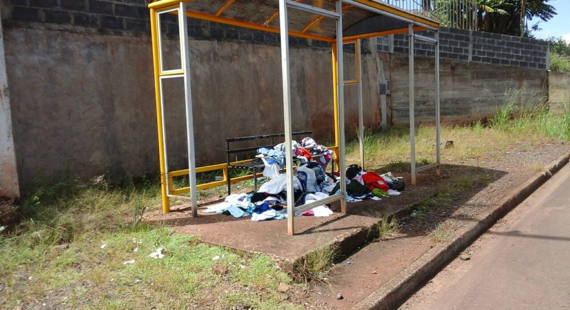 Roupas usadas são abandonadas em ponto de ônibus de Herval d’Oeste