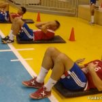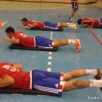 Após almoçar e descansar, os atletas por volta das 18h30 realizaram um treinamento nas dependências do local do jogo, ou seja, o Campus 1 da Unoesc.