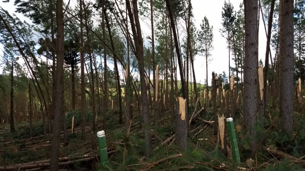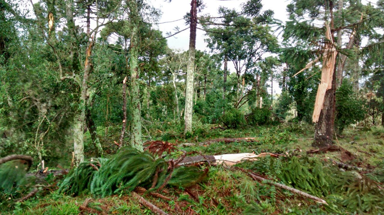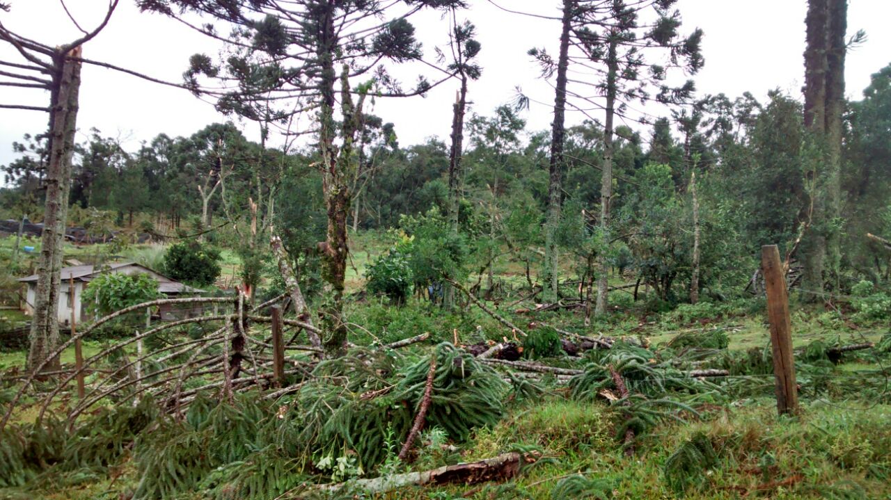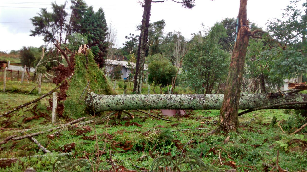 Jaborá – O vento forte da madrugada arrancou árvores na estrada geral da comunidade de Pedra Lisa, próximo ao trevo de acesso a Jaborá. A informação é de que os Bombeiros tiveram muito trabalho para liberar a via. Durante o atendimento da ocorrência os registros fotográficos feitos chamaram a atenção. Algumas árvores de pinus foram derrubadas com a força do vento. Além disso, araucárias também caíram devido ao vento forte. Cerca de 30 árvores foram danificadas. (Fonte: Alex Pacheco)