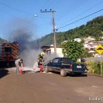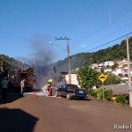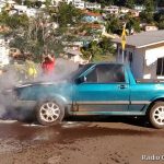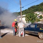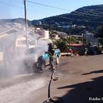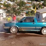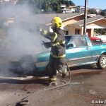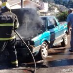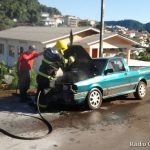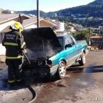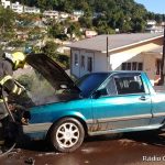 Na tarde desta quarta-feira (12) na rua São Paulo, no bairro Vila Rica em Herval d´Oeste, um veículo VW Saveiro pegou fogo e necessitou da ajuda do Corpo de Bombeiros para apagar as chamas.