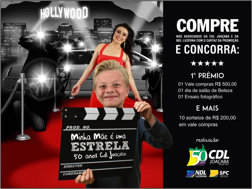 índiceEm Joaçaba e Luzerna, a CDL e a NDL, lançaram uma promoção para premiar os consumidores e ajudar no incremento das vendas. Trata-se da promoção “Minha Mãe é uma Estrela”. Os consumidores que estão comprando nas lojas identificadas com cartazes da promoção, que estão recebendo e preenchendo os cupons, vão concorrer à vários prêmios. O primeiro prêmio vai contemplar uma mãe com R$ 500,00 em vale-compras,  um dia de salão de beleza e mais um ensaio fotográfico. Os demais prêmios serão 10 vale-compras de R$ 200,00.