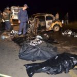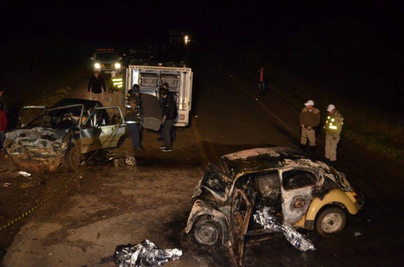 Cinco pessoas da mesma família, entre elas duas crianças, morreram carbonizadas em uma colisão entre veículos no início da noite deste sábado (3) na SC-451, entre Frei Rogério e Curitibanos.  As vítimas estavam em um Fusca com placas de Frei Rogério, que pegou fogo após bater de frente em um Fiat Uno com placas de Curitibanos.