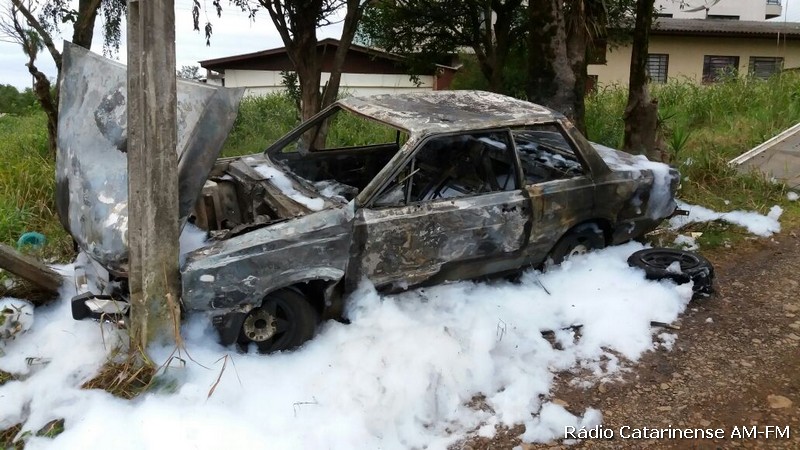 Um acidente curioso foi registrado por volta das 16h15 desta segunda-feira (19), na rua Pedro Lara no bairro Nossa Senhora de Lourdes em Joaçaba. Um veículo Ford Del Rey com placas da cidade de Herval d´Oeste, pegou fogo após colidir com um poste de energia elétrica.