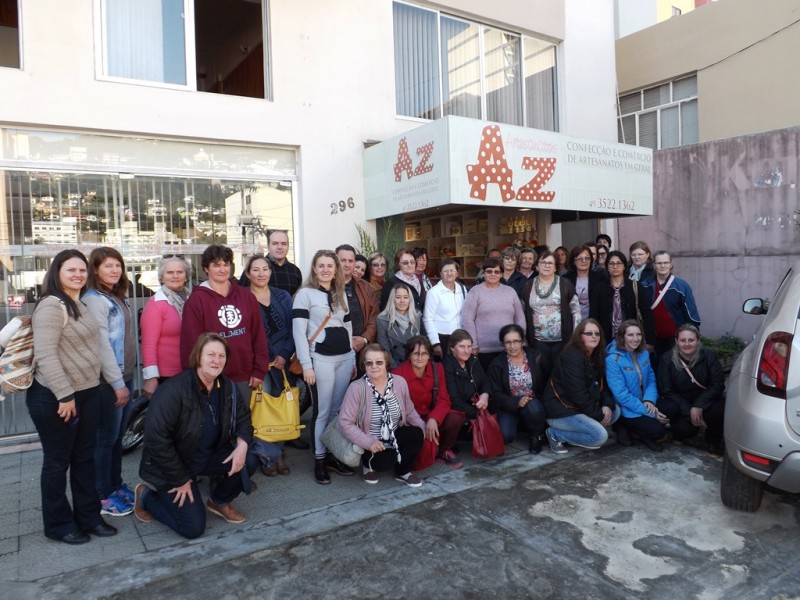 Após a visita na Comunidade de Santa Helena, os visitantes passaram no Studio AZ Artesanato para conhecer o trabalho da Dona Rosvita Zagonel que produz artesanatos com palha de milho e outros materiais e é referência como empreendedora individual no artesanato local.