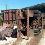 A carreta estava carregada de farelos e os grãos ficaram sobre a pista, deixando a mesma escorregadia. Os proprietários dos caminhões se responsabilizaram em fazer o recolhimento da carga.