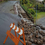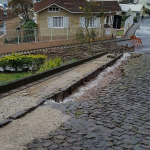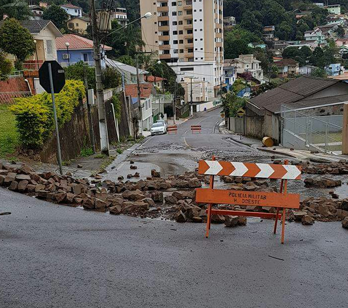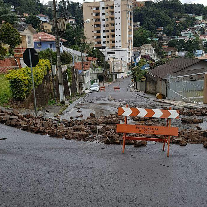 As fortes chuvas causaram sérios problemas, em especial, na rua Almirante Barroso esquina com a rua Frei Edgar no bairro Tobias, onde com a força das águas, paralelepípedos se soltaram e ficaram soltos na pista, interditando o trânsito para veículos no local.
