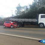 O motorista de um VW Up, placas QIZ-3882 de Capinzal, ficou ferido ao colidir na traseira de um caminhão VW/7.100 com placas do Rio Grande do Sul. O acidente foi registrado por volta das 8h na BR-470, próximo ao trevo de acesso ao município de Zortéa, interior de Campos Novos.