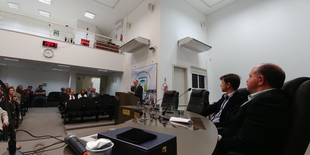 O Instituto Histórico e Geográfico de Santa Catarina – IHGSC – realizou ontem à noite em Joaçaba uma reunião descentralizada em homenagem aos 100 anos de Joaçaba. O encontro, que aconteceu na Câmara de Vereadores, teve por objetivo também o incentivo a criação de Institutos Históricos e Geográficos municipais em Santa Catarina.