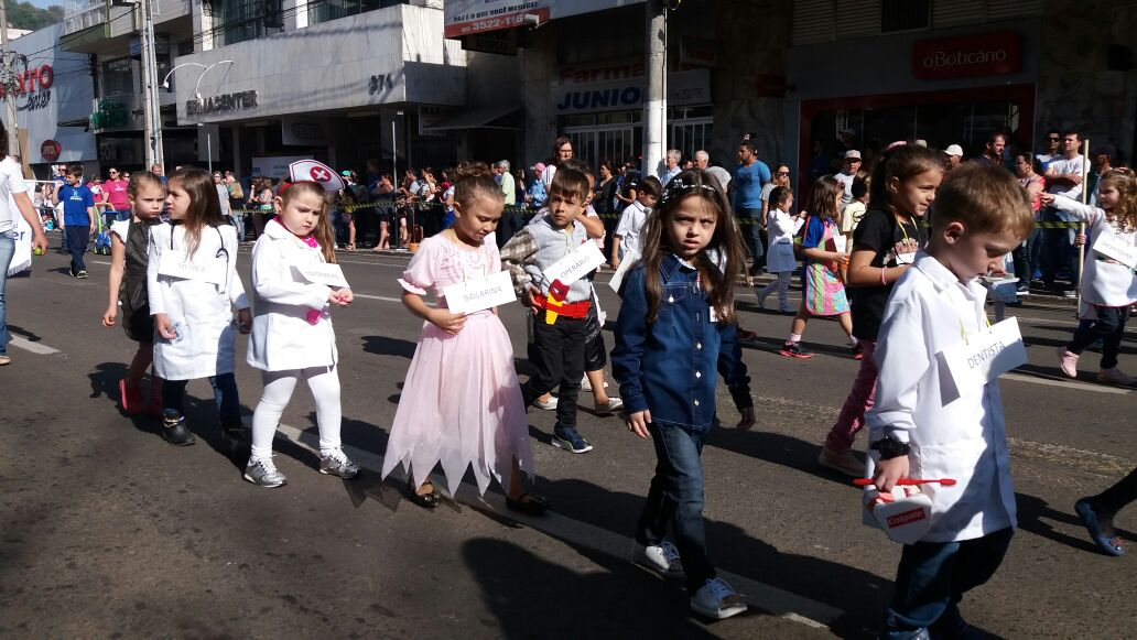 Mesmo com forte sol e a temperatura elevada o público esteve presente na manhã desta quinta-feira (07) na Avenida XV de Novembro, para acompanhar o Desfile Cívico que também ilustrou através das escolas, o Centenário de Joaçaba.