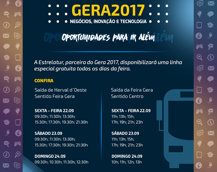 Retorno da Feira GERA: 10h00, 11h00, 12h00 e 13h00