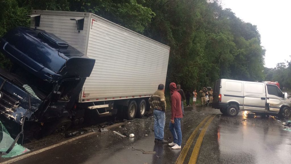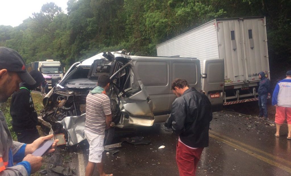 Vargem Bonita – O motorista de uma Van com placas de Chapecó morreu por volta das 13h desta sexta-feira, dia 29, em uma colisão na BR-282, entre Irani e Joaçaba, na região de Vargem Bonita. A colisão envolveu também um caminhão. A Van teve a frente completamente destruída com o impacto da colisão.