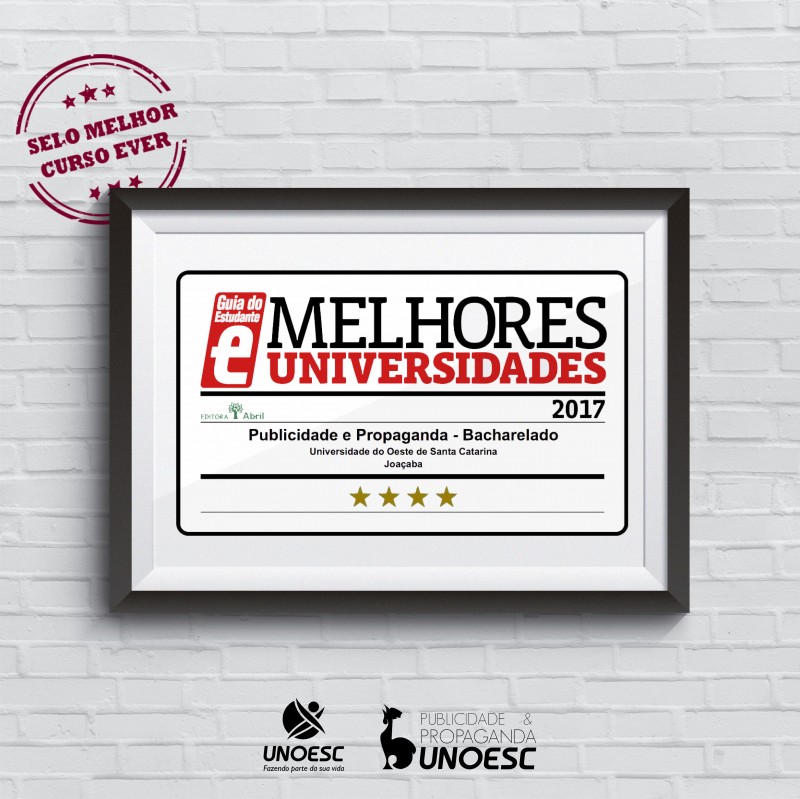 Neste ano, o curso de Publicidade e Propaganda da Unoesc Joaçaba tem mais um motivo para comemorar os 20 anos de instalação na universidade. Desta vez, o curso recebeu o selo de qualidade do Guia do Estudante, da Editora Abril, com quatro estrelas, sendo considerado como muito bom.
