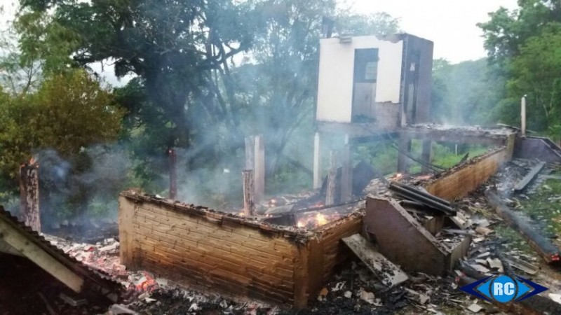 Um raio pode ter provocado um incêndio que destruiu uma casa de madeira na madrugada deste sábado (21) na comunidade de Linha Galdina, interior de Campos Novos.
