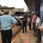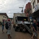 Caminhão sem freio atinge ônibus no centro de Ibicaré