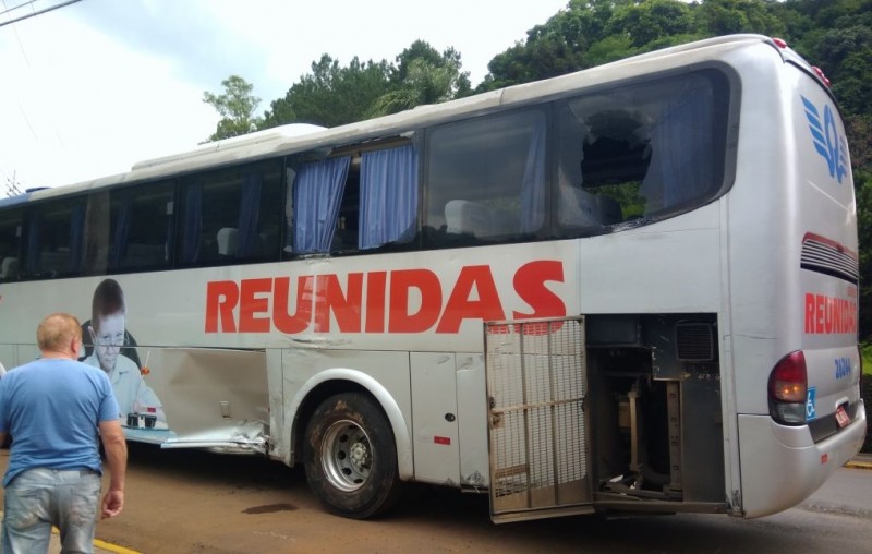 Corpo de Bombeiros e Polícia Militar (PM) atenderam a ocorrência, sendo que o motorista do caminhão ficou preso com as pernas na cabine do veículo. No coletivo ninguém se feriu.