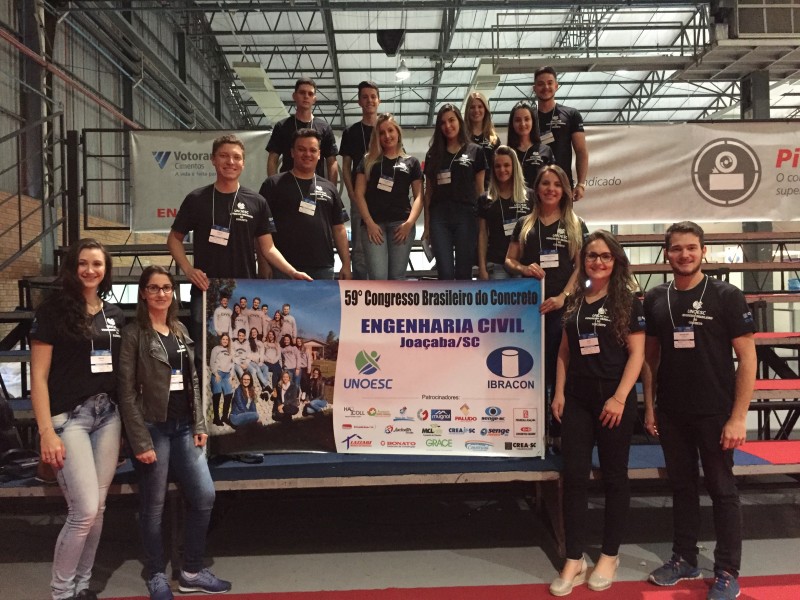 Entre os dias 31 de outubro a 03 de novembro de 2017, os acadêmicos do curso de Engenharia Civil da Unoesc Joaçaba e suas professoras orientadoras Jhulis Marina Carelli e Maiara Foiato participaram do 59º Congresso Brasileiro do Concreto, em Bento Golçalves – RS, onde conquistaram o primeiro lugar no “Concurso Concreto Colorido Translúcido de Alta Resistência” (COCAR), terceiro lugar no “Concurso CONCREBOL” e terceiro lugar no “Concurso Quem Sabe Faz ao Vivo”, produzindo concreto autoadensável, concorrendo com mais de 20 universidades de todo o país, dentre elas várias federais.