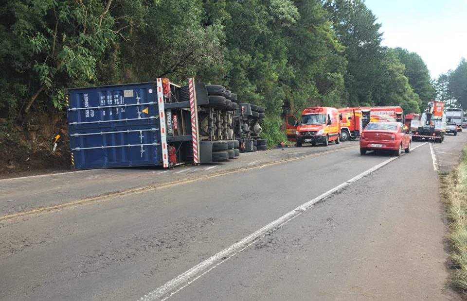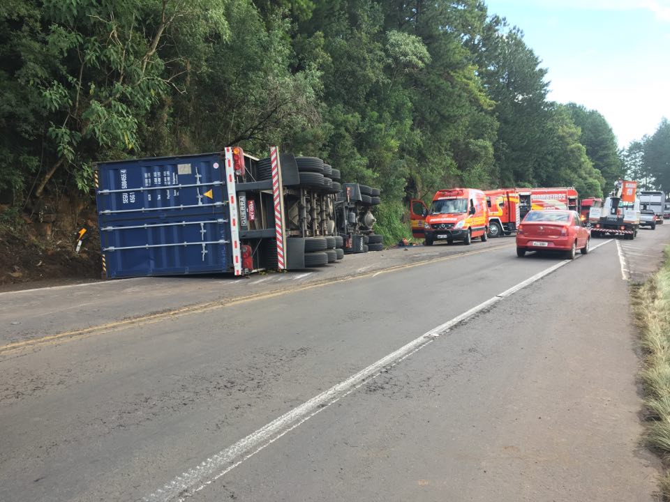 Motorista morre após tombamento de carreta na BR-282 em Vargem Bonita