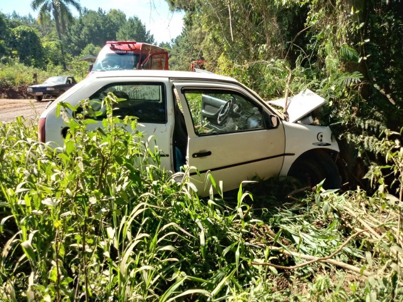 Na manhã deste domingo, 03, por volta das 10h20, o Corpo de Bombeiros, atendeu a uma saída de pista na estrada de Pedra Liza, interior de Catanduvas. A condutora de um veículo VW Gol com placas de Catanduvas, perdeu o controle da direção e o veículo saiu da pista.