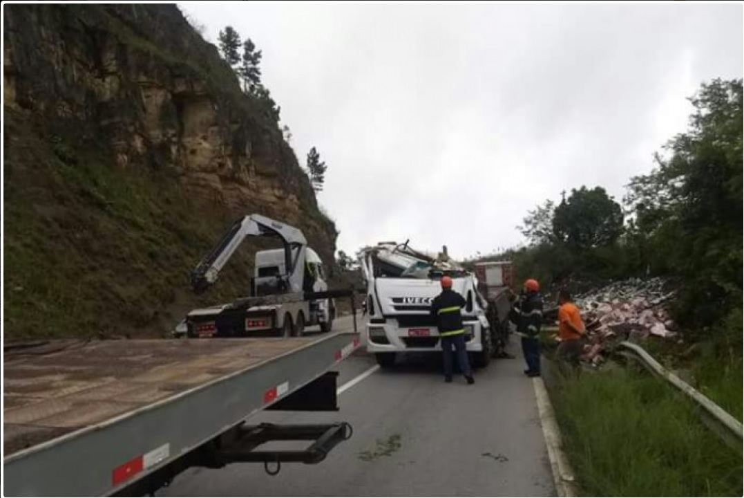 da Polícia Rodoviária Federal morreu preso às ferragens. O Corpo de Bombeiros foi acionado e fez a retirada do corpo para a remoção ao IML. A parte da cabine ficou destruída.