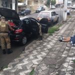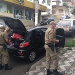 Durante vistoria no próprio local, os policiais encontraram dezoito celulares, produtos de furto, que estavam escondidos no interior do veículo, principalmente dentro do painel e acondicionados em meias. Os elementos, de acordo com a PM, admitiram que furtaram os aparelhos em lojas como Caçador e Videira. A polícia acredita que estes aparelhos seriam levados para comercialização no RS. Também foi encontrado uma porção de maconha, um codificador de travas e uma certa quantia em dinheiro.