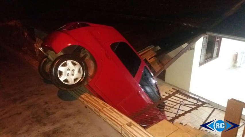 O carro derrubou uma cerca e após colidir contra o telhado de uma residência parou com a parte da frente no piso da varanda do imóvel. Por sorte não havia ninguém no local no momento do acidente. Um guincho foi acionado para fazer a remoção do veículo que teve danos materiais consideráveis.