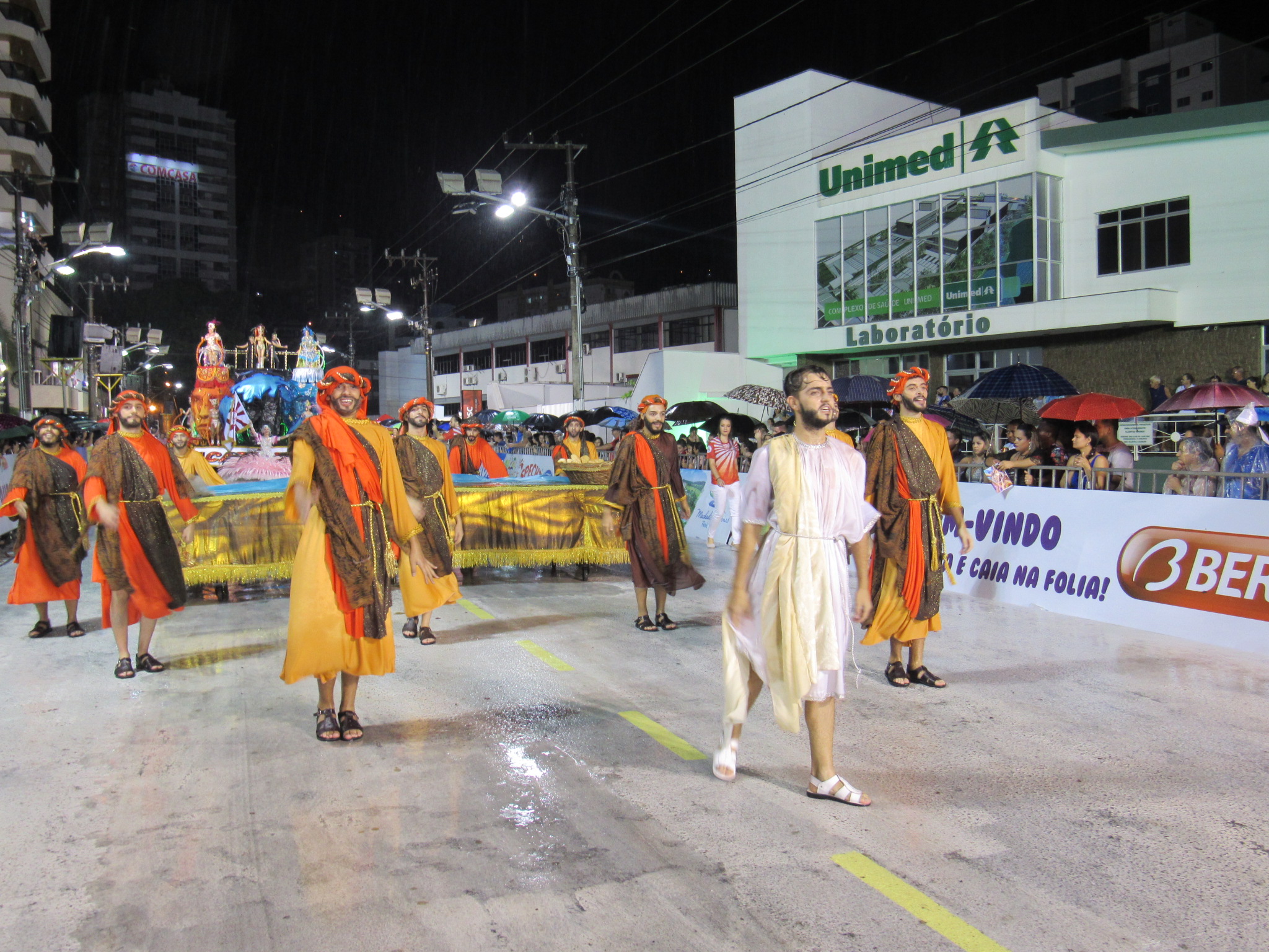 A chuva prejudicou diretamente o segundo desfile das Escolas de Samba de Joaçaba e Herval d’Oeste na noite deste domingo (11). Em alguns momentos imaginou-se até que o evento poderia ser transferido ou cancelado em razão da precipitação volumosa antes das escolas entrar na avenida. O evento previsto para iniciar as 21h30 sofreu alguns atrasos na expectativa de que a chuva diminuísse, mas como o mau tempo não cessou optou-se pelo desfile em respeito ao público que estava na avenida. A Acadêmicos do Grande Vale abriu o evento embaixo de um verdadeiro aguaceiro, enfrentando problemas com quedas de energia que desligavam a sonorização, com o enredo “Acadêmicos o Exército da Paz” mostrando o mundo logo após o seu surgimento, ainda sem a interferência do Homem e em harmonia.
