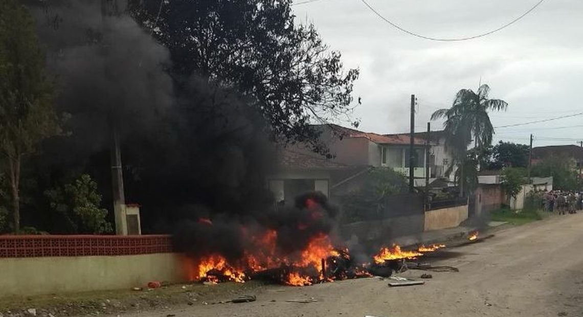 A queda de um helicóptero na tarde desta quinta-feira (8) provocou a morte de três pessoas e deixou uma ferida no bairro Paranaguamirim, na Zona Sul de Joinville, no Norte catarinense. A aeronave caiu na rua, perto de várias casas, e pegou fogo depois, segundo a Polícia Militar. “Houve sequestro do nosso helicóptero”, afirmou ao G1 o diretor da empresa de táxi-aéreo Avalon, Hugo Farias. Os mortos seriam o piloto, um assistente do piloto e um passageiro, conforme relatou o sobrevivente à Polícia Militar. Ele era outro passageiro, um preso que estava em liberdade provisória e não teve ferimentos graves.