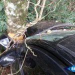 Motorista fica ferido após sair da pista e colidir contra árvore em Capinzal