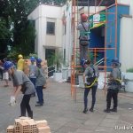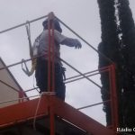 A praça defronte a Prefeitura de Joaçaba se tornou um canteiro de obras para a simulação do acidente que envolveu duas pessoas, sendo que uma teria caído de um andaime e a outra perdido a mão numa encenação do uso de uma máquina de serra.