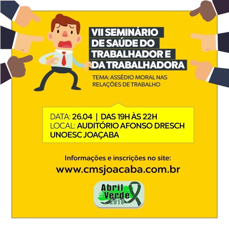 Neste ano, o Seminário é parte integrante do abril verde, mês destinado a prevenção de acidentes e doenças do trabalho, instituído em Joaçaba pela Lei nº 5076 de 06 de abril de 2017.