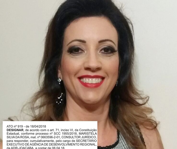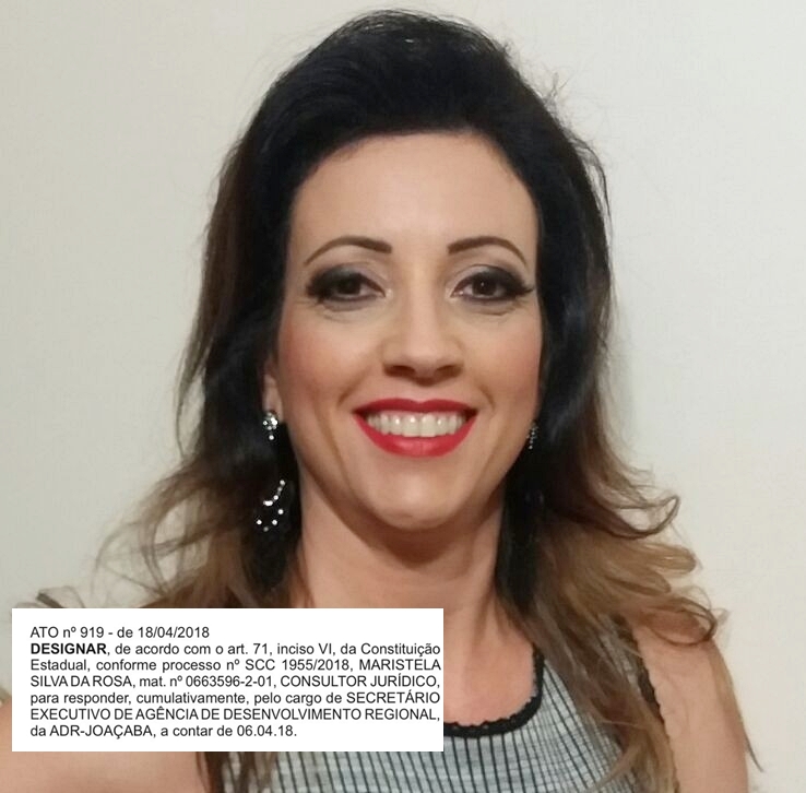 Uma portaria publicada pelo Governo do Estado no Diário Oficial desta quarta-feira, dia 18, nomeia a advogada Maristela Silva da Rosa como nova Secretária da Agência de Desenvolvimento Regional em Joaçaba (ADR). Maristela já ocupa o cargo de consultora jurídica na ADR e conforme a portaria vai acumular também a função de Secretária a partir deste mês de abril até que seja nomeado o titular desta pasta. O PMDB regional, conforme reunião realizada há poucos dias em Joaçaba, chegou ao consenso, e apresentou ao Governador o nome do joacabense Jorge Ronaldo Pohl. Ao que tudo indica a nomeação do titular deverá demorar mais algum tempo ainda.
