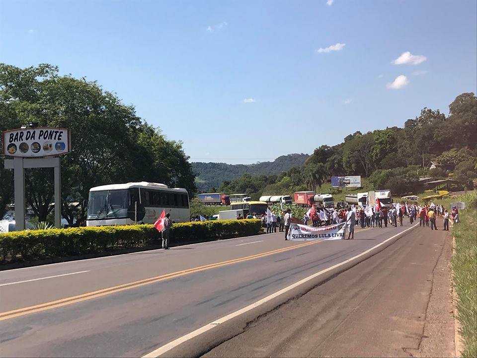 Mobilização e fechamento da BR-153 entre SC e RS reúne centenas de pessoas em defesa de Lula