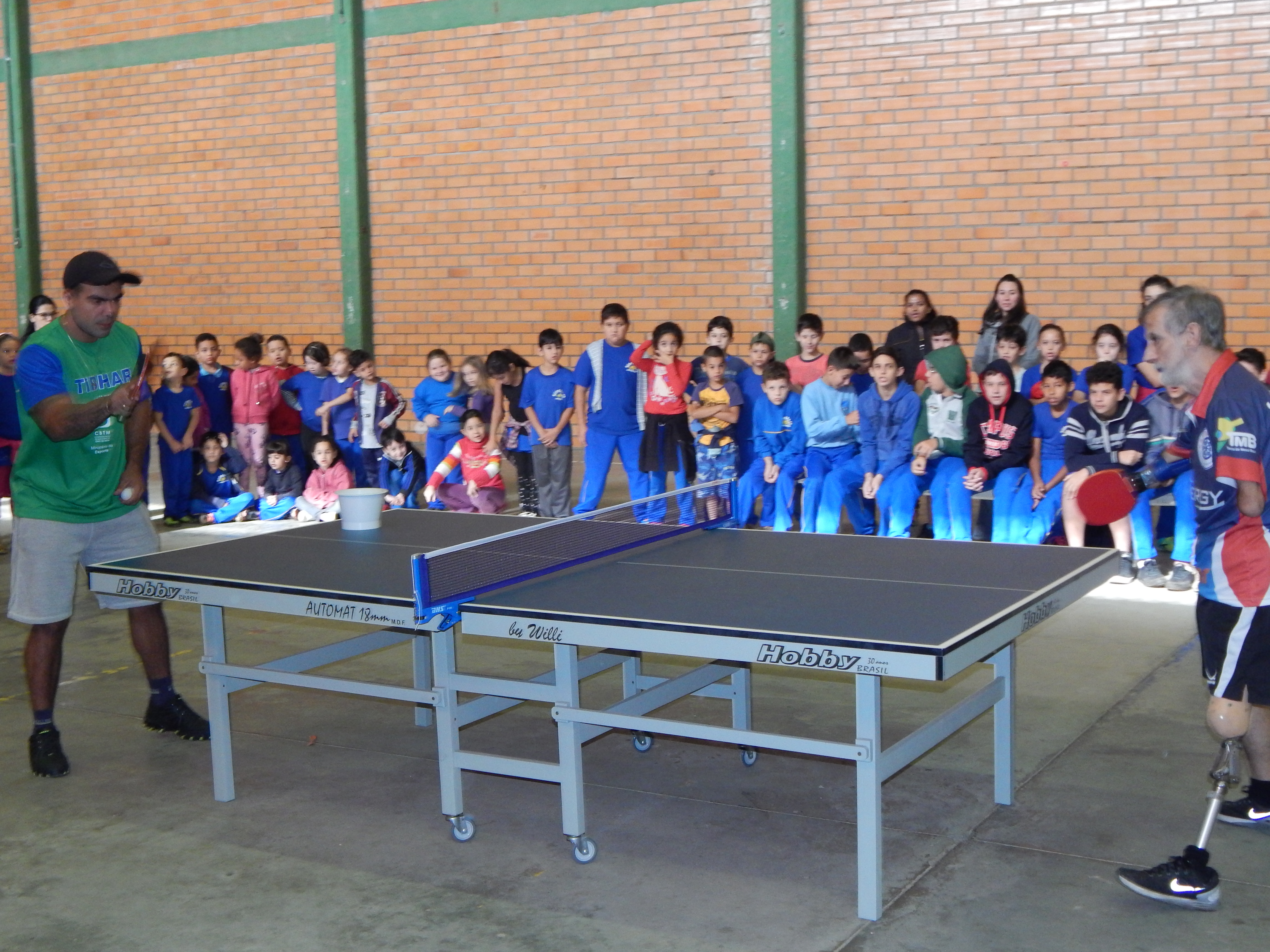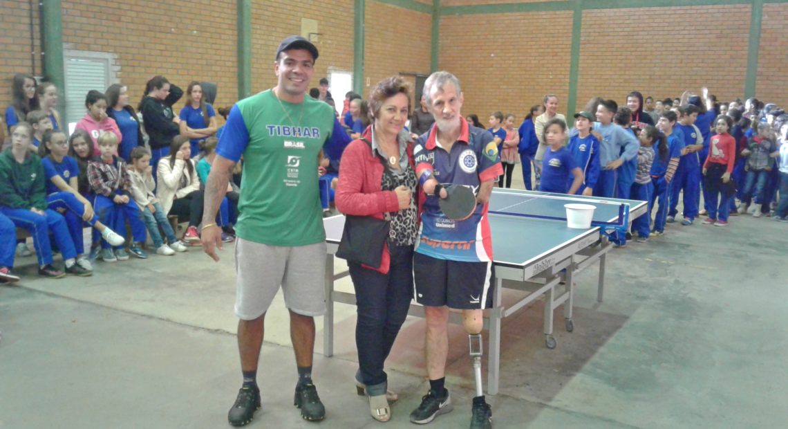 O mesatenista paraolímpico também jogou tênis de mesa com os alunos das instituições de ensino.