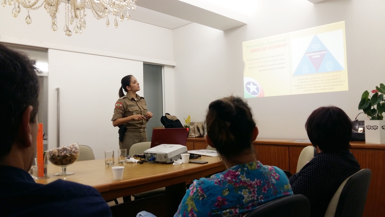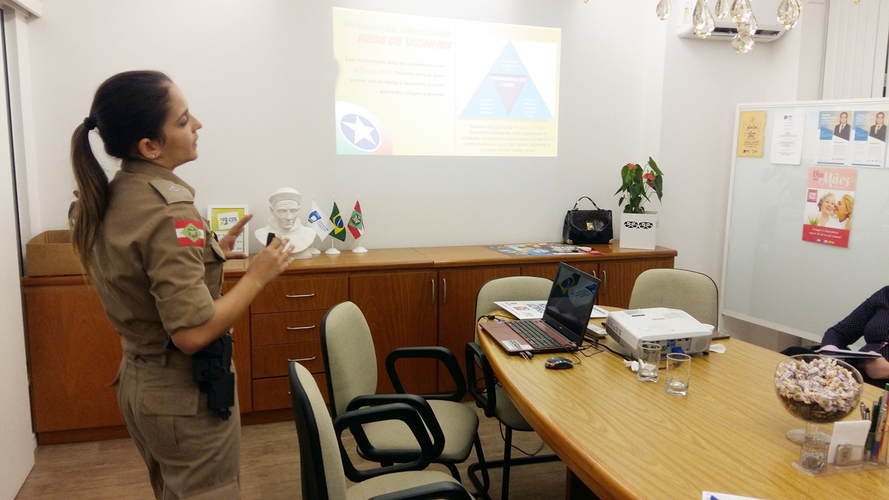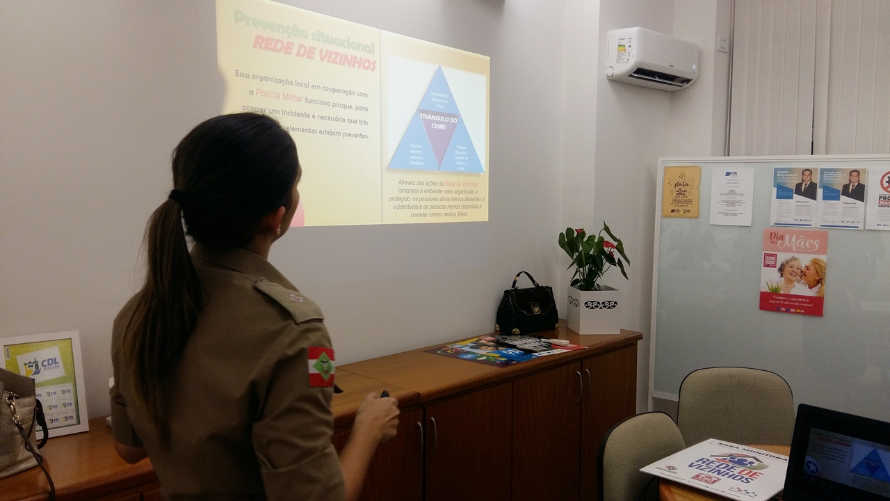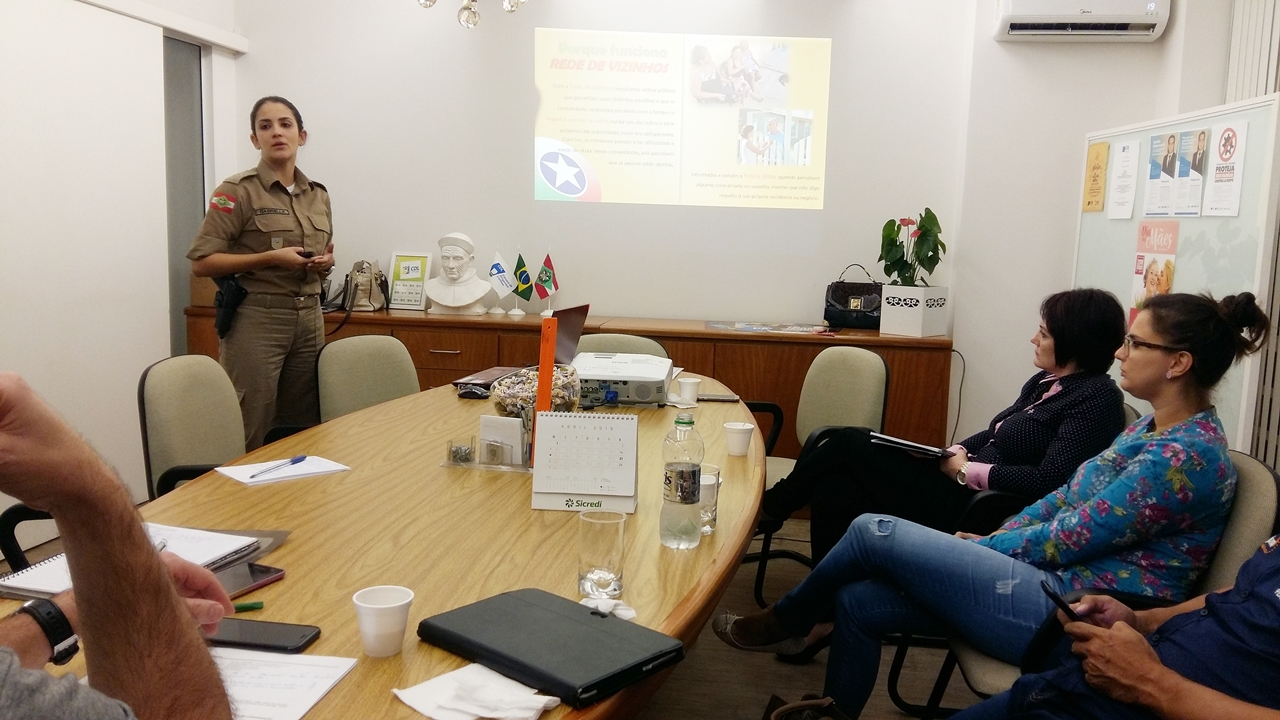 Em Joaçaba o projeto já foi implantado em dois bairros: Jardim Alvorado e Itália. Nesta terça-feira (10) a Tenente Gabrieli Nogueira Pinto do 26º Batalhão com sede em Herval d’Oeste participou da reunião da diretoria da Câmara de Dirigentes Lojistas de Joaçaba (CDL). O objetivo foi apresentar o projeto e estimular a criação de um grupo envolvendo os proprietários de lojas e demais empresários da área central da cidade. Um mapa estatístico apresentado pela Tenente Gabriela mostrou que nos últimos 12 meses foram registrados dezenas de furtos na área central da cidade e este tipo de mecanismo pode ser muito útil para frear este tipo de ocorrência e auxiliar a polícia a tirar de circulação os autores dos furtos. Segundo ela a implantação dos grupos é com custo praticamente zero já que o aplicativo (WhatsAPP) pode ser baixado gratuitamente. “Uma movimentação estranha de um carro, de uma pessoa, pode ser informada no grupo e a PM vai averiguar”.