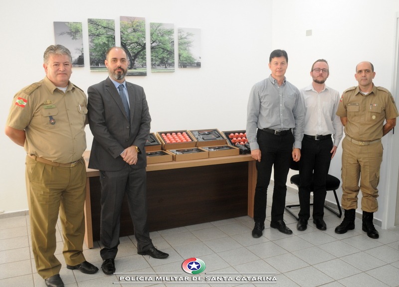 O Poder Judiciário de Joaçaba fez esta semana a entrega de novos equipamentos de segurança que serão utilizados pelos policiais do 26º Batalhão da PM com sede em Herval d’Oeste. A entrega foi feita foi feita pelo Juiz da Vara Criminal de Joaçaba, Márcio Umberto Bragaglia e pelo promotor de Justiça, Protásio Campos Neto. O Batalhão recebeu cinco dispositivos elétricos incapacitantes, modelo SPARK. Os equipamentos foram adquiridos com verbas do Poder Judiciário e são instrumentos de menor potencial ofensivo que permitem a imobilização temporária de pessoas que estejam praticando crimes e que reajam à atuação policial, proporcionando ao policial mais alternativas ao fazer o uso progressivo da força.