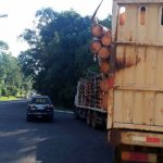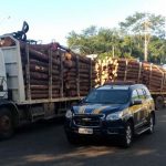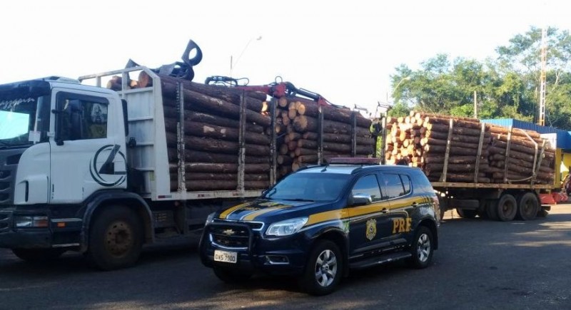 O caminhão foi abordado em fiscalização de rotina e estava carregado com toras de madeira. Como a carga estava bastante alta, os policiais levaram o caminhão para ser pesado em balança rodoviária.
