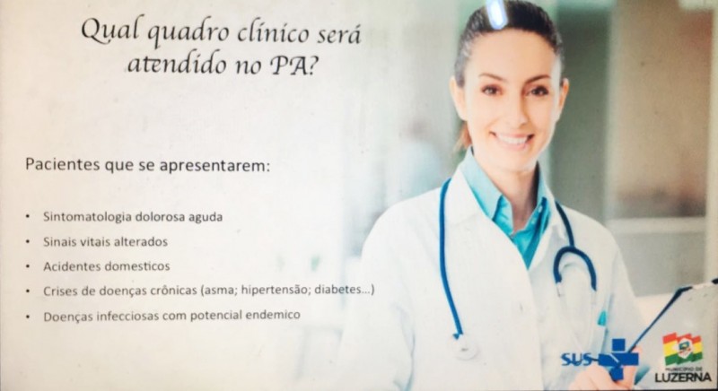 Visando dar mais agilidade, qualidade e eficiência aos serviços prestados, a Secretaria Municipal de Saúde e Assistência Social passa a adotar a partir do próximo mês um novo sistema de atendimento em Luzerna. Voltado às pessoas que necessitam de atendimento imediato, ou seja, que não possam aguardar o agendamento, será implantado no dia 04 de junho o Posto de Atendimento a Demanda Espontânea (P.A.) de Luzerna.