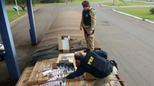 Os agentes receberam uma denúncia informando que um caminhão Volvo∕FH 440 de cor prata, estaria trazendo uma carga de contrabando e passaria na rodovia. A equipe abordou o veículo em frente à unidade da PRF.