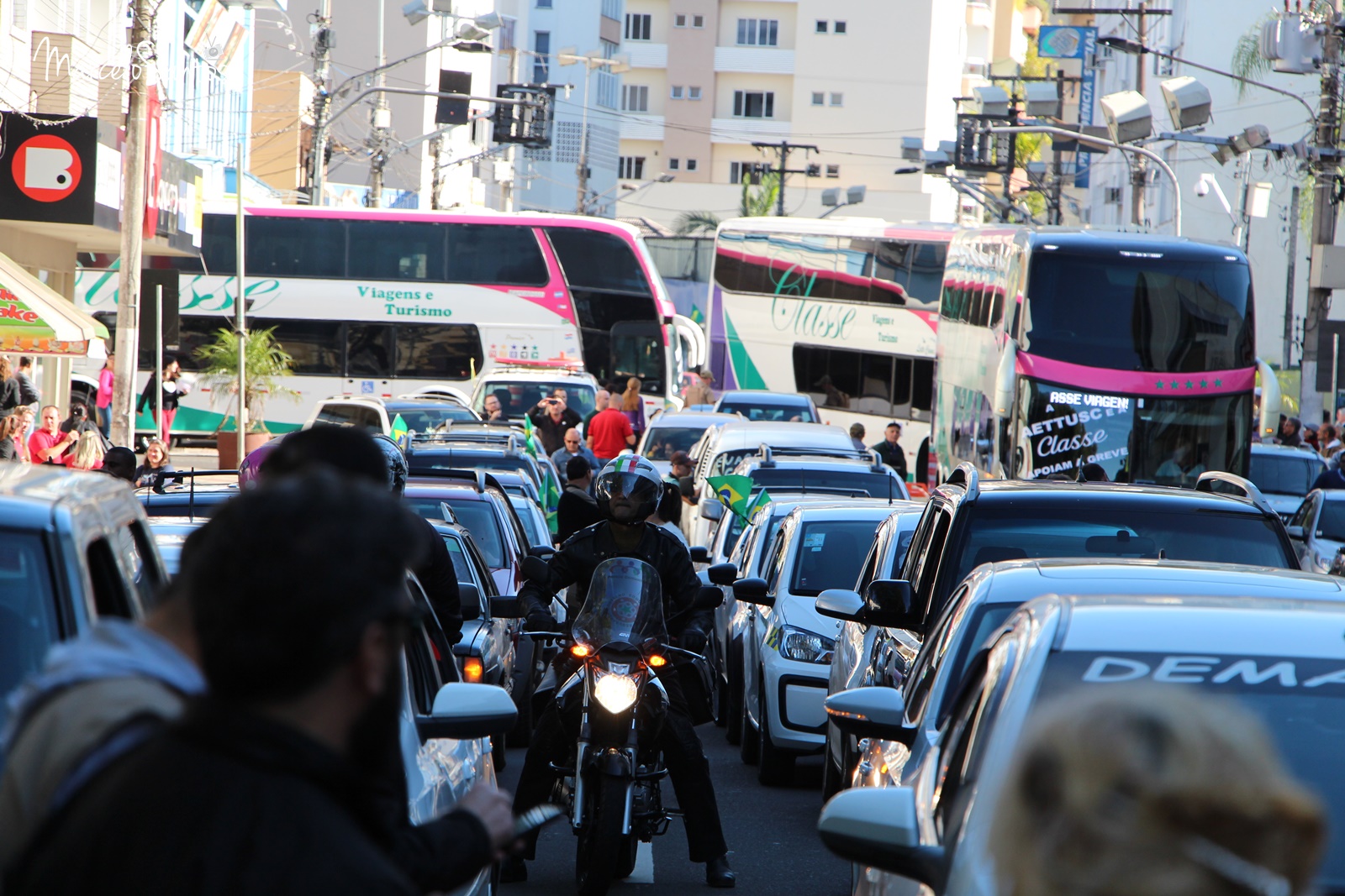 Por volta das 15h, muitos estabelecimentos comerciais, localizados na área central da cidade, fecharam as portas e liberaram os funcionários para participar do ato que aconteceu em frente a prefeitura. Com bandeiras, cartazes, apitos e outros acessórios, os joaçabenses saíram as ruas determinados a pressionar o Governo contra a alta dos combustíveis que funciona como efeito cascata, atingindo todos os setores. A XV, que teve meia pista interditada pela Polícia Militar, ficou lotada de veículos, muitos com bandeiras do Brasil. Decorados com as cores da nação eles partiram rumo ao CPJ em carreata. Formaram uma longa caravana que impressionou até mesmo os organizadores do ato. NO CPJ foram recebidos com palmas e buzinaços pelos transportadores como se a “visita” fosse uma espécie de combustível para incentivar ainda mais o grupo. Os manifestantes lotam as imediações do CPJ. Pelos cálculos são mais de 400 caminhões estacionados e os transportadores estão recebendo total apoio da comunidade que tem levado água e alimentos.