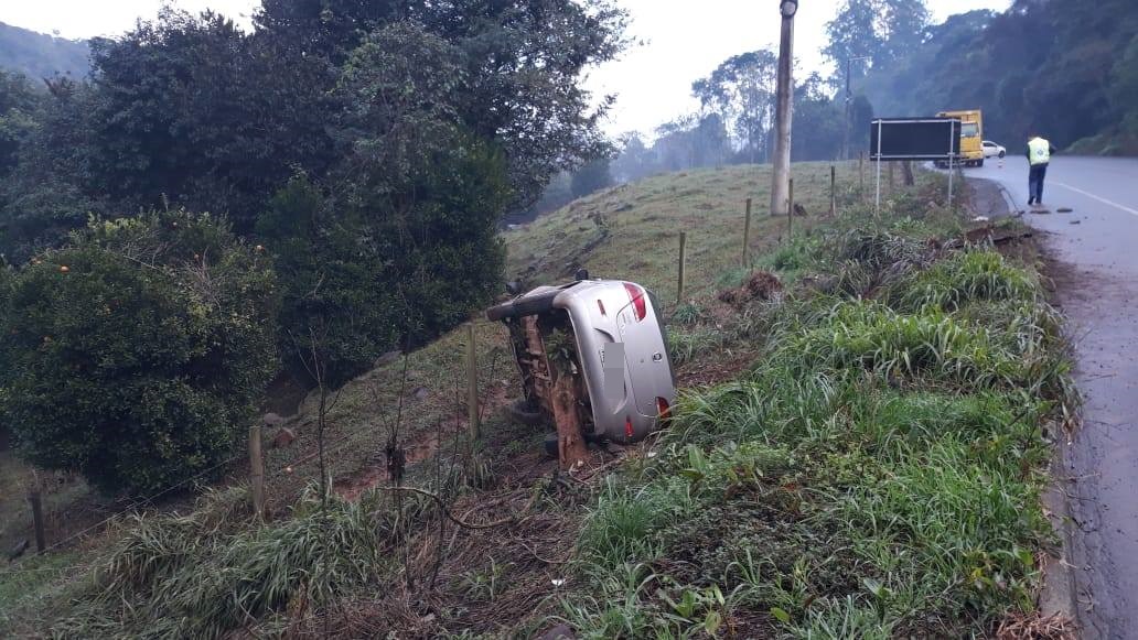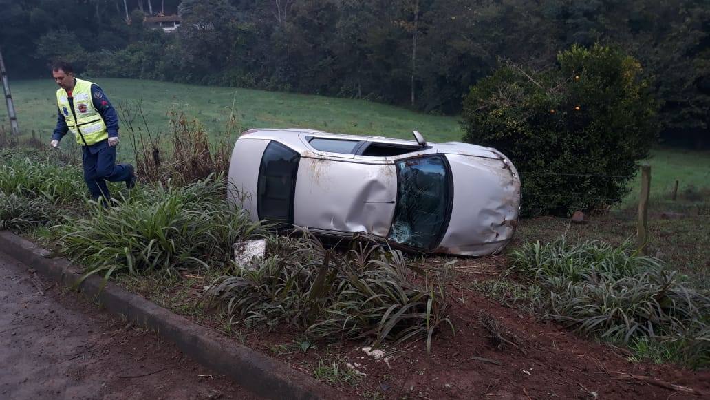 Veículo capota entre Ouro e Lacerdópolis na manhã desta segunda-feira