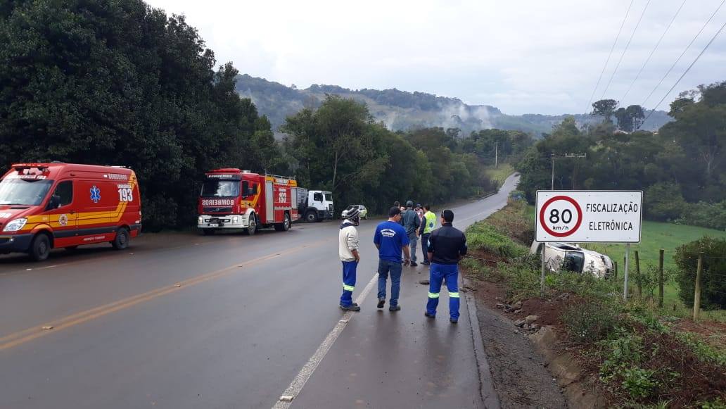 O carro acabou saindo de pista e capotando na margem da rodovia. O veículo parou de lado, pendurado a uma cerca de arame farpado que delimita uma propriedade. A jovem foi socorrida pelo Corpo de Bombeiros de Capinzal e, conforme as informações, apesar do susto, não teria se ferido. Ela estaria se dirigindo ao Distrito de Barra do Leão onde iria visitar os pais.