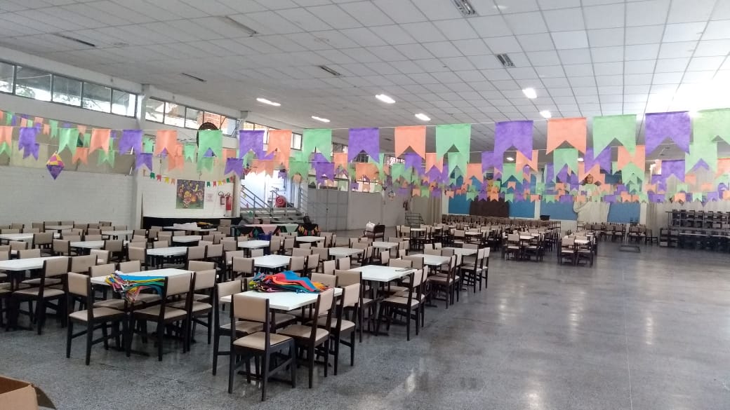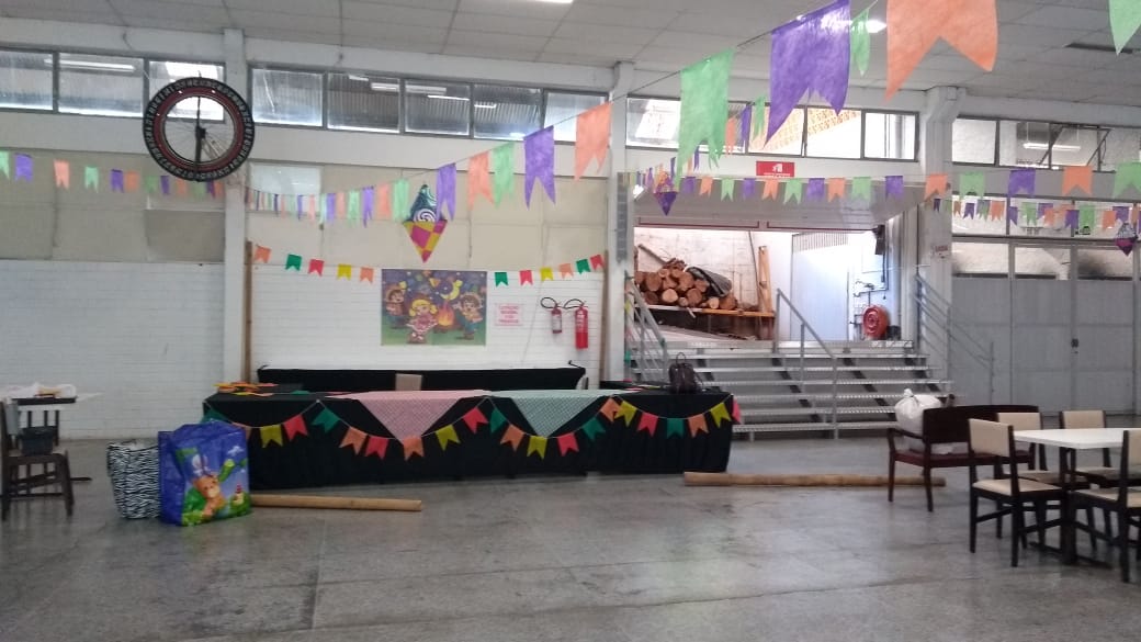 Creche Irmã Scheila: Pipoca doce e salgada, quentão, bolachas, bolo (milho, fubá, amendoim e outros), bolo salgado, pizzas pé de moleque e paçoca.
