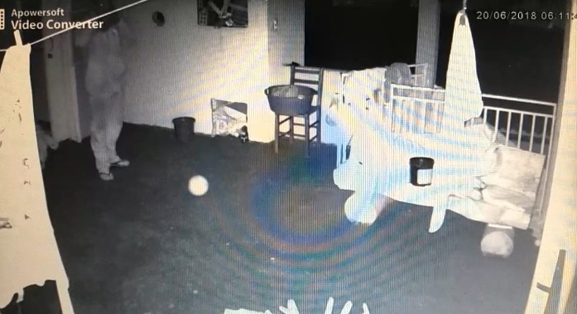 Em imagens das câmeras de uma residência próxima ao local dos furtos, o homem aparece cheirando as peças e as escondendo no casaco.