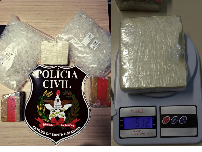 A Polícia Civil de Joaçaba/SC, por meio da Divisão de Investigação Criminal – DIC, prendeu em flagrante uma mulher na posse de aproximadamente um quilo de maconha e meio quilo de cocaína.