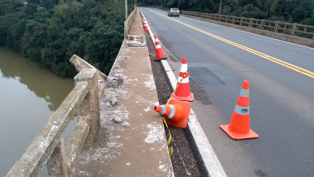 Veículo despenca da ponte da BR-282 em Joaçaba e está submerso no Rio do Peixe
