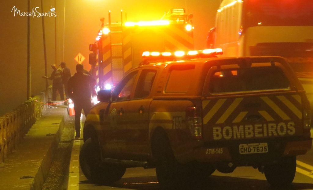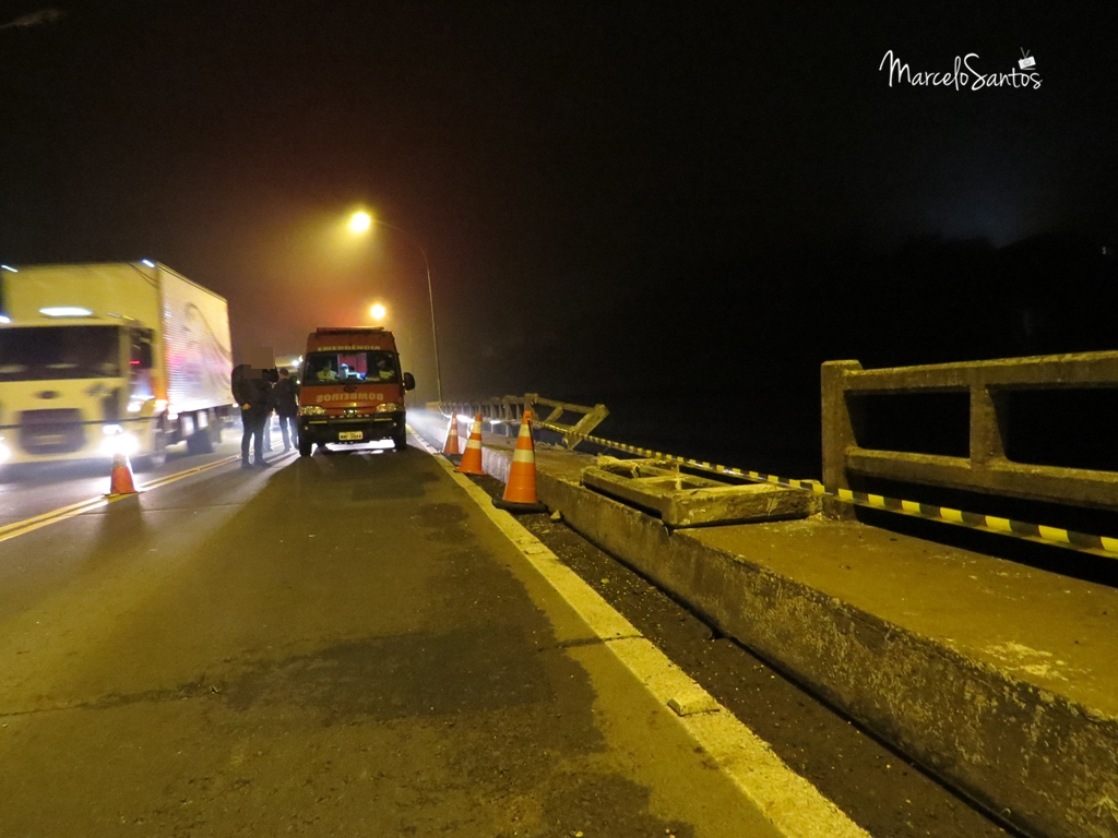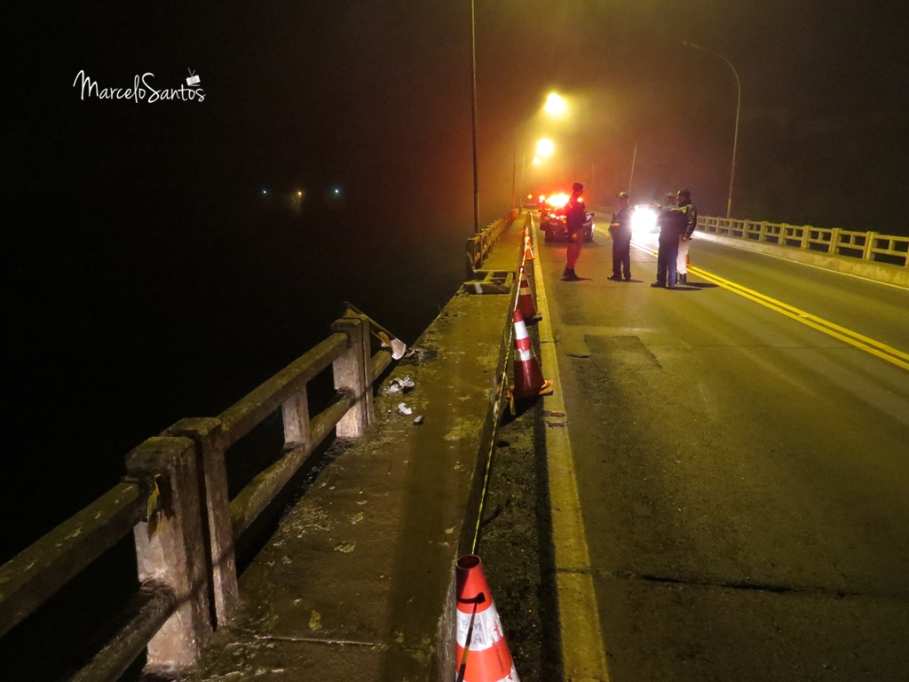 Um veículo despencou de uma altura de mais de 30 metros da ponte da BR-282 em Joaçaba. O acidente aconteceu por volta das 21h30 desta quarta-feira (04). Não há testemunhas, apenas vizinhos que escutaram os estrondos da ponte arrebentando e do veículo batendo na água. Bombeiros vão iniciar as buscas na manhã desta quinta-feira. O local onde o veículo caiu tem profundidade superior a 8 metros. Pelos sinais na ponte o veículo fazia sentido Joaçaba à Erval Velho. Assim que amanheceu o dia foi possível visualizar uma grande mancha de óleo na água. Em breve mais informações.. (atualizado às 07h30)