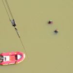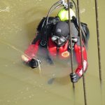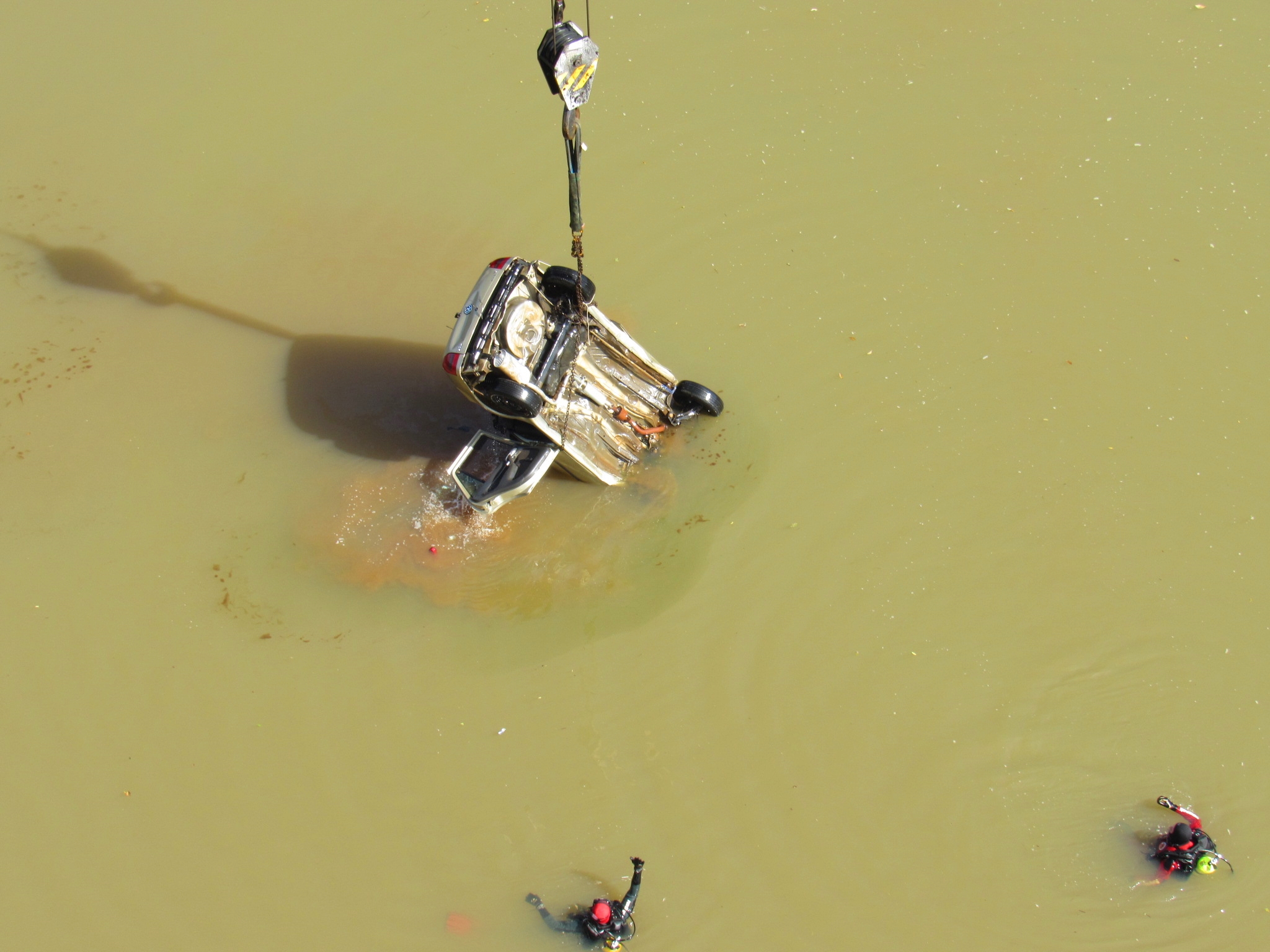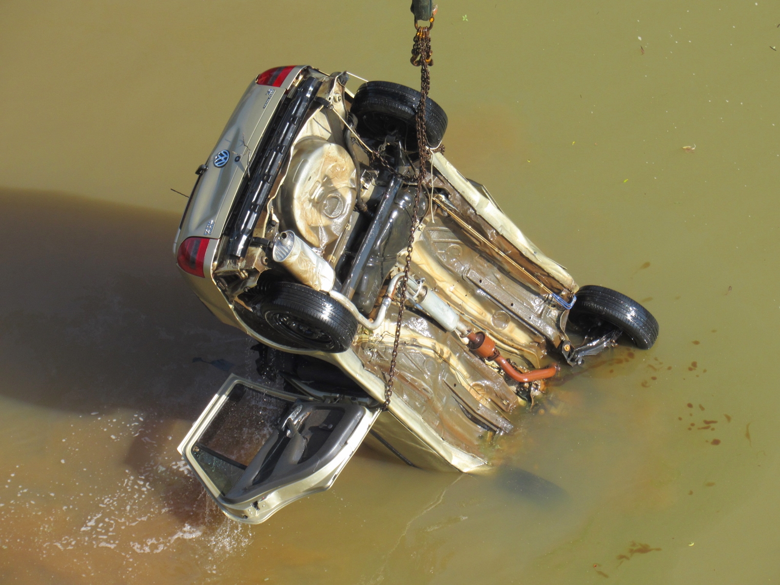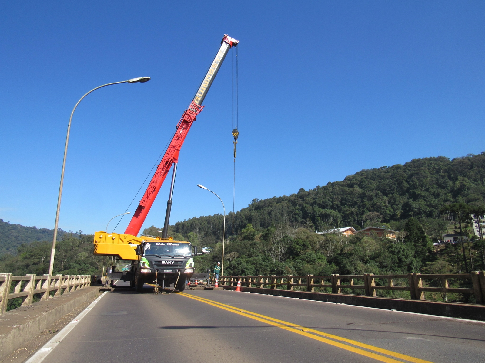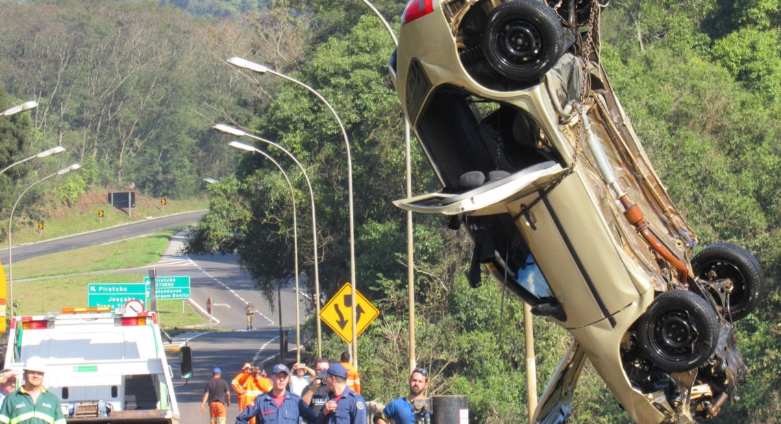 O veículo VW/Gol com placas de Erval Velho que caiu na noite desta quarta-feira (04) da ponte Alfredo Ítalo Remor na BR-282 em Joaçaba foi içado das águas do Rio do Peixe no final da manhã desta quinta-feira (05). A operação exigiu um guindaste de grande porte e também a interdição do trânsito na ponte por cerca de duas horas. Dois mergulhadores do Corpo de Bombeiros prenderam cabos no veículo que estava numa profundidade de 10 metros para que o guindaste pudesse executar o serviço. O trabalho foi rápido e sem nenhum imprevisto.