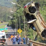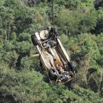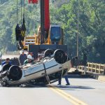 Veículo que caiu da ponte é retirado das águas do Rio do Peixe